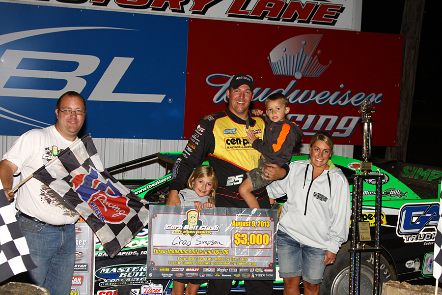 Chad Simpson wins $3,000 at the Fayette County (IA) Speedway on August 9, 2013 - Mike Ruefer Photo